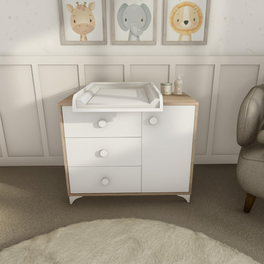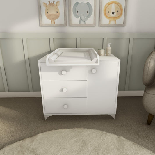 كومودين أطفال مع سطح تبديل - أبيض